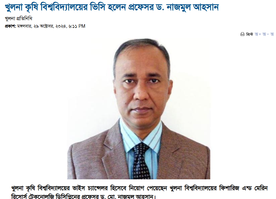 খৃশুবির নতুন উপাচার্য হিসেবে দায়িত্ব গ্রহণ করলেন প্রফেসর ড. নাজমুল আহসান।